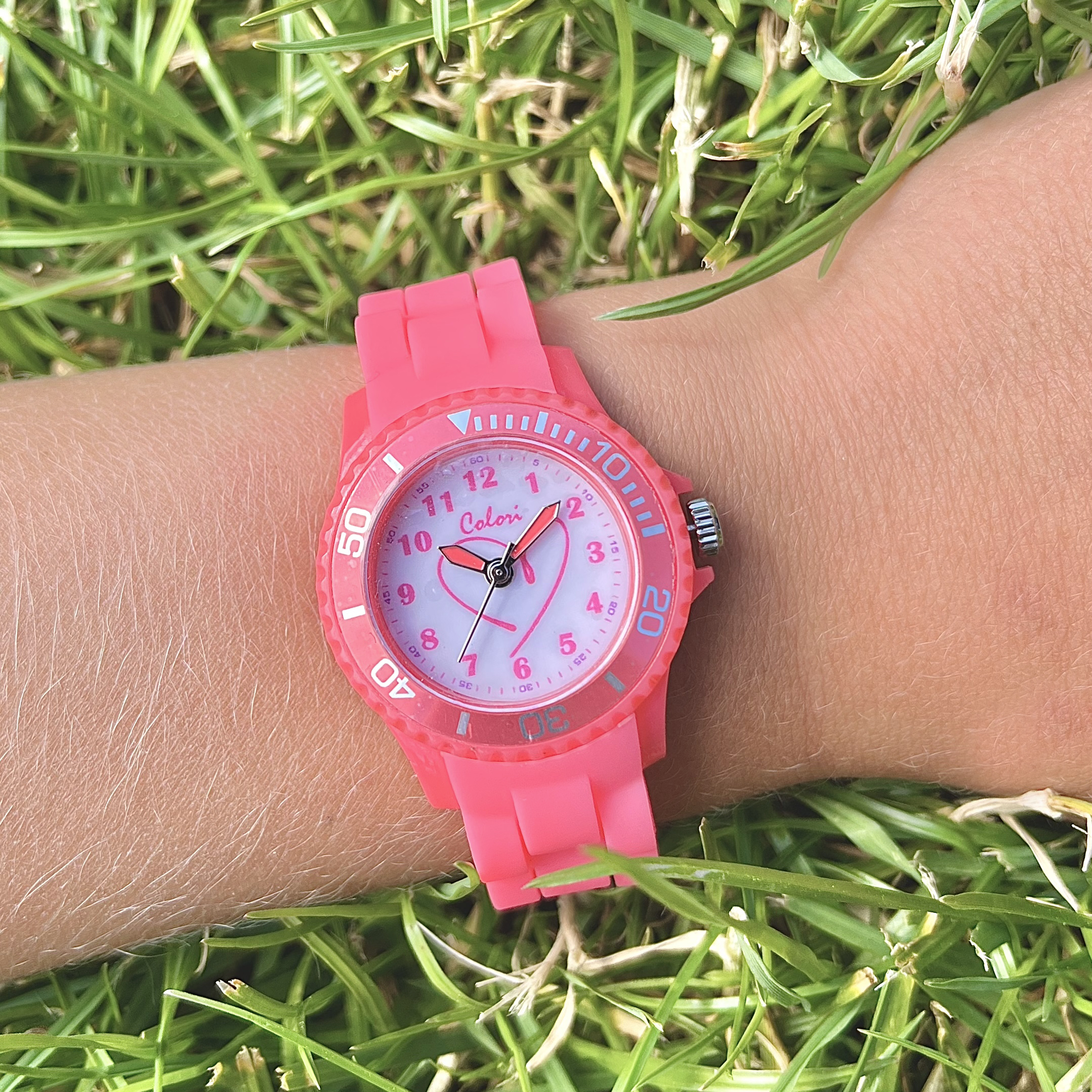 Un reloj rosa para niños con un corazón en la esfera. Este reloj es resistente al agua 5ATM. Para garantizar la longevidad del reloj, le aconsejamos que no lo lleve mientras nada. Es un reloj perfecto para que los niños aprendan a leer la hora.